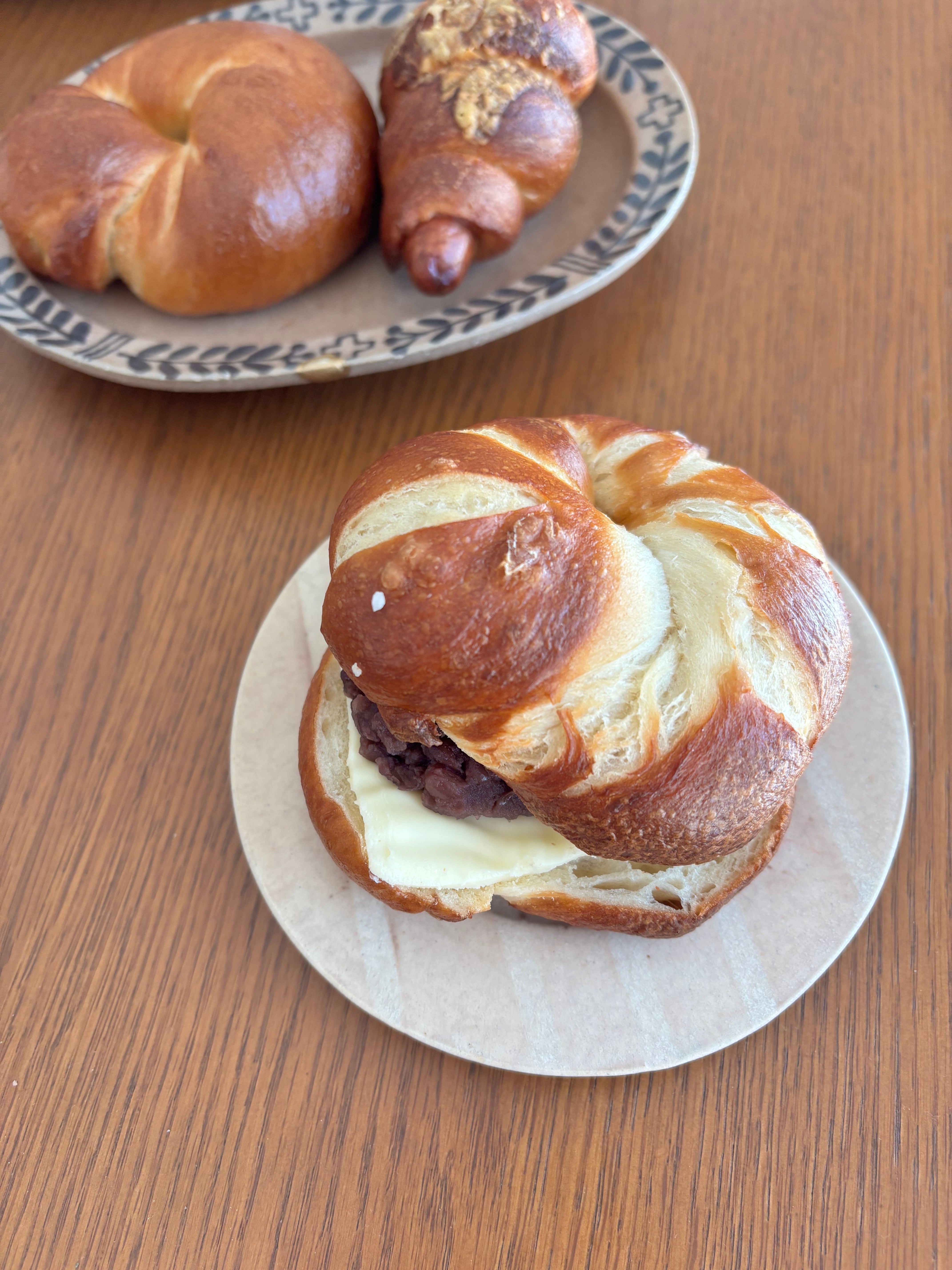 〇あんバターサンド(プレッツェル風生地に、自家製粒あんとよつ葉バター)